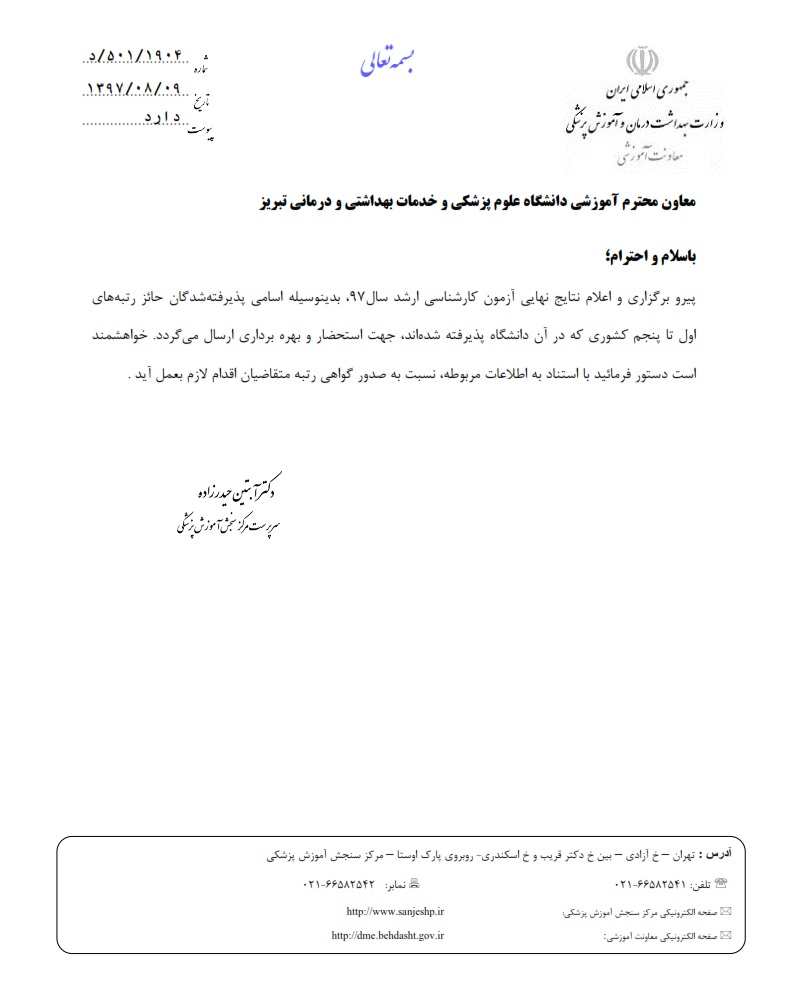 بدینوسیله کسب رتبه چهارم کشوری آزمون کارشناسی ارشد سال 97 توسط سرکار خانم مریم علیزاده دانشجوی کارشناسی ارشد مامایی را به ایشان، خانواده محترم ایشان و کلیه همکاران محترم انشکده تبریک و تهنیت عرض نموده، موفقیت روزافزونشان را از درگاه ایزد منان خواستاریم.