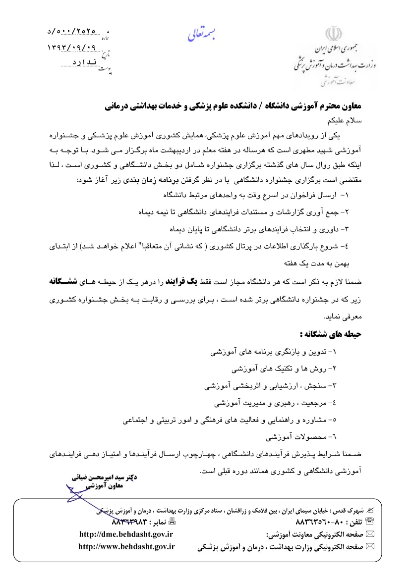 اطلاعیه معاونت آموزشی وزارت بهداشت درخصوص جشنواره آموزشی
