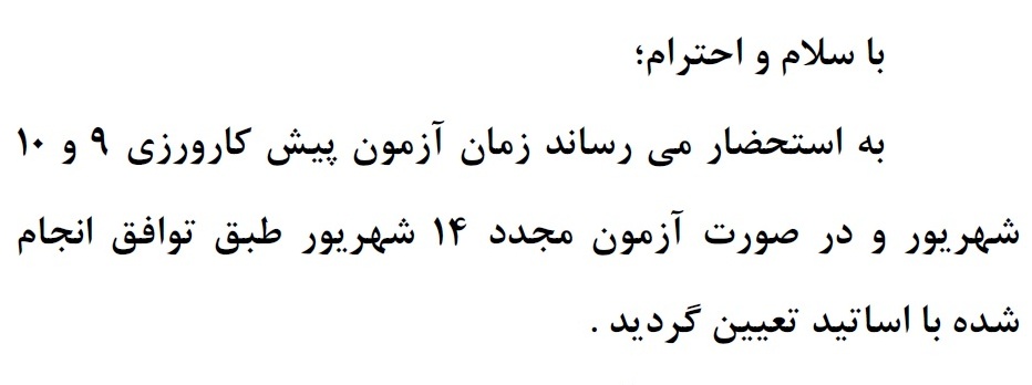 اطلاعیه زمان برگزاری آزمون پیش کارورزی
