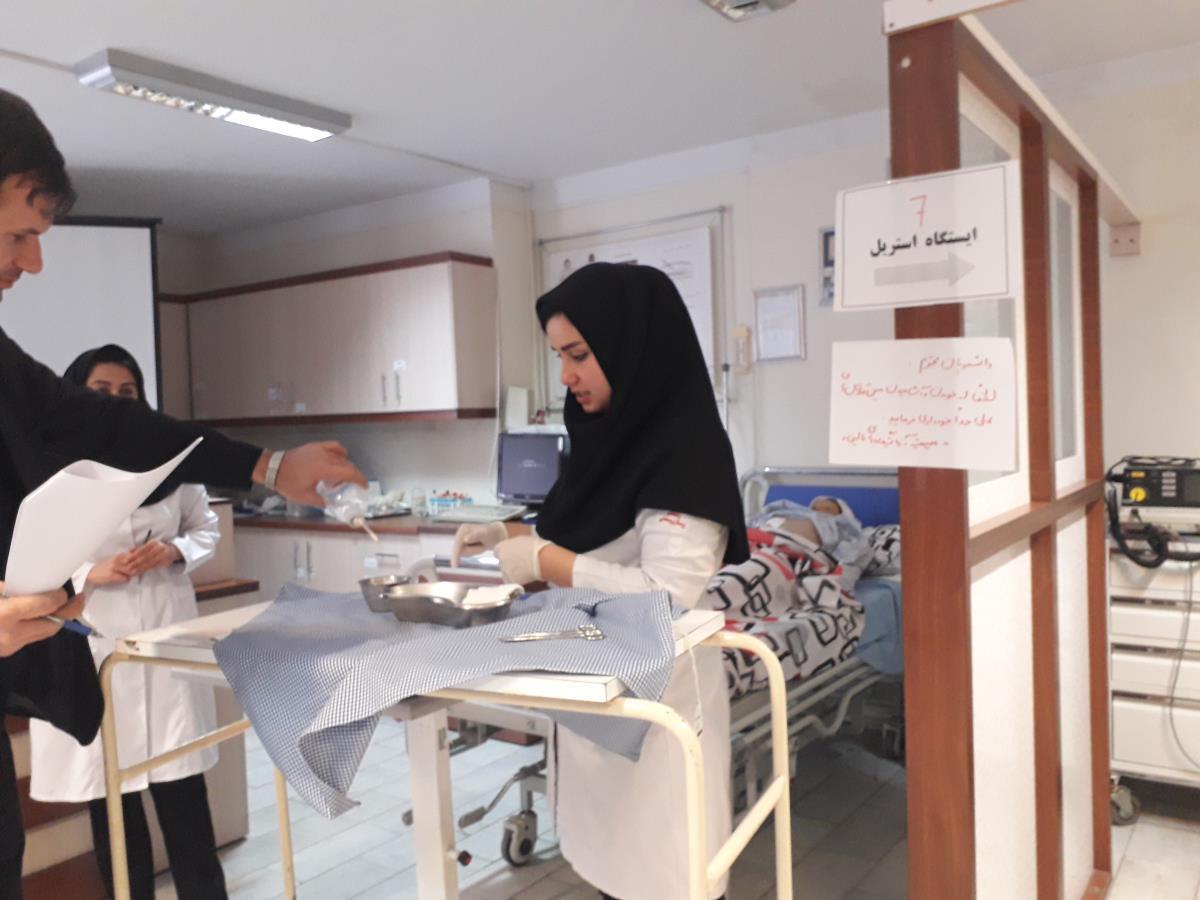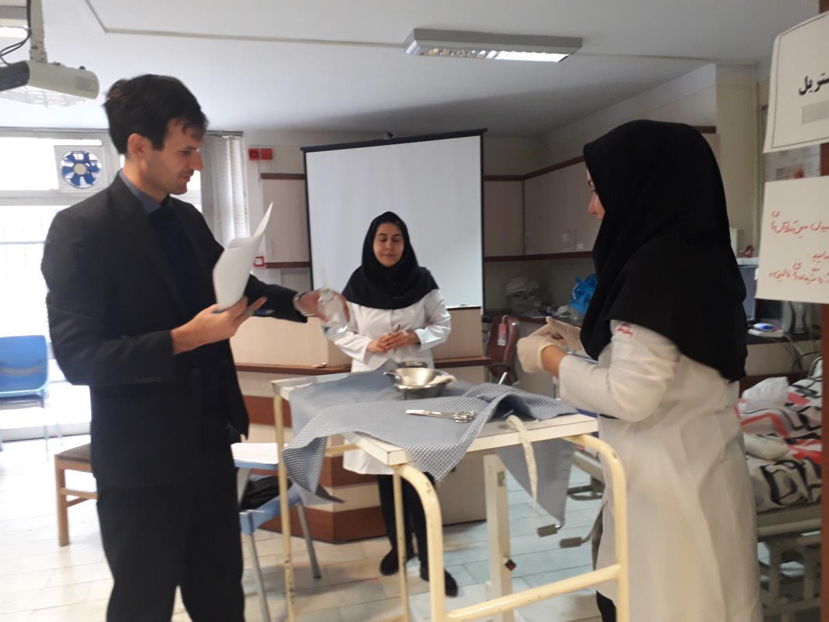 آزمون فینال عملی دانشجویان ترم 8 کارشناسی پرستاری در مورخه های 23 و 24 دی ماه با حضور 52 دانشجوی در شرف فارغ التحصیلی در 7 ایستگاه (روانپرستاری، پرستاری کودکان، پرستاری بهداشت جامعه، فرآیند پرستاری، مهارتهای پرستاری بزرگسالان شامل سه ایستگاه مهارتهای پایه، پروسیجرهای استریل) توسط ...