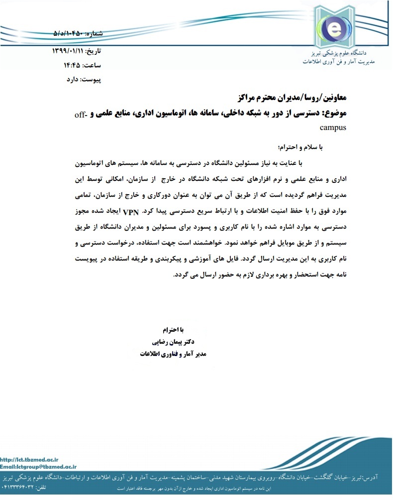 دسترسی از راه دور به شبکه داخلی، سامانه ها، اتوماسیون اداری، منابع علمی و off-Campus