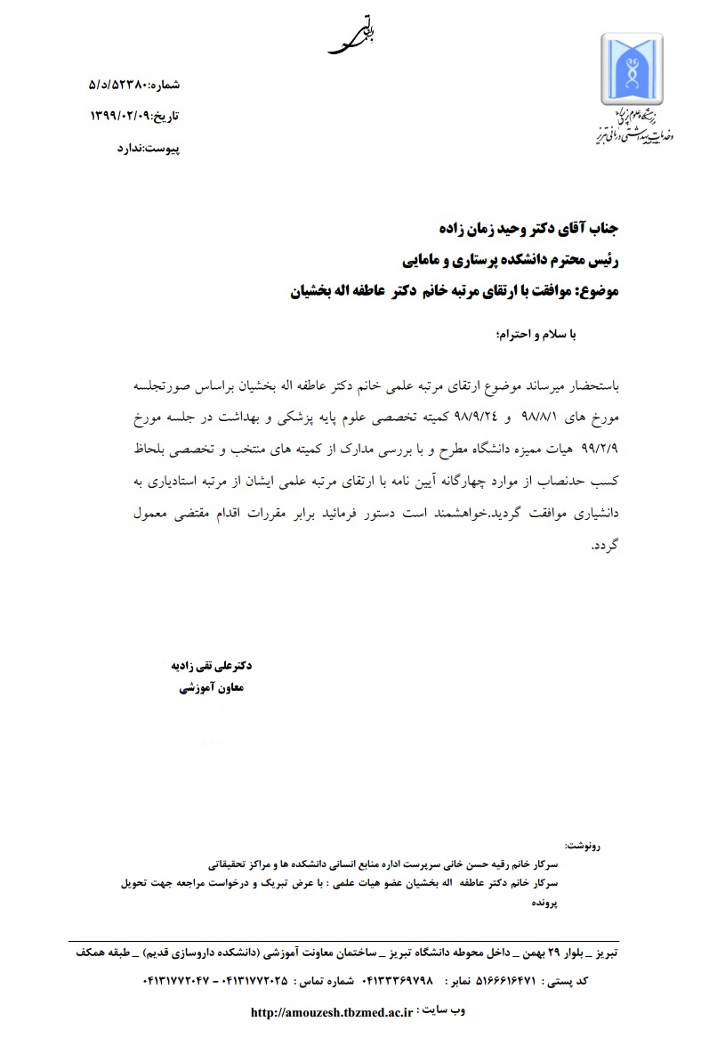 تبریک ارتقاء مرتبه علمی سرکار خانم دکتر عاطفه اله بخشیان به دانشیاری