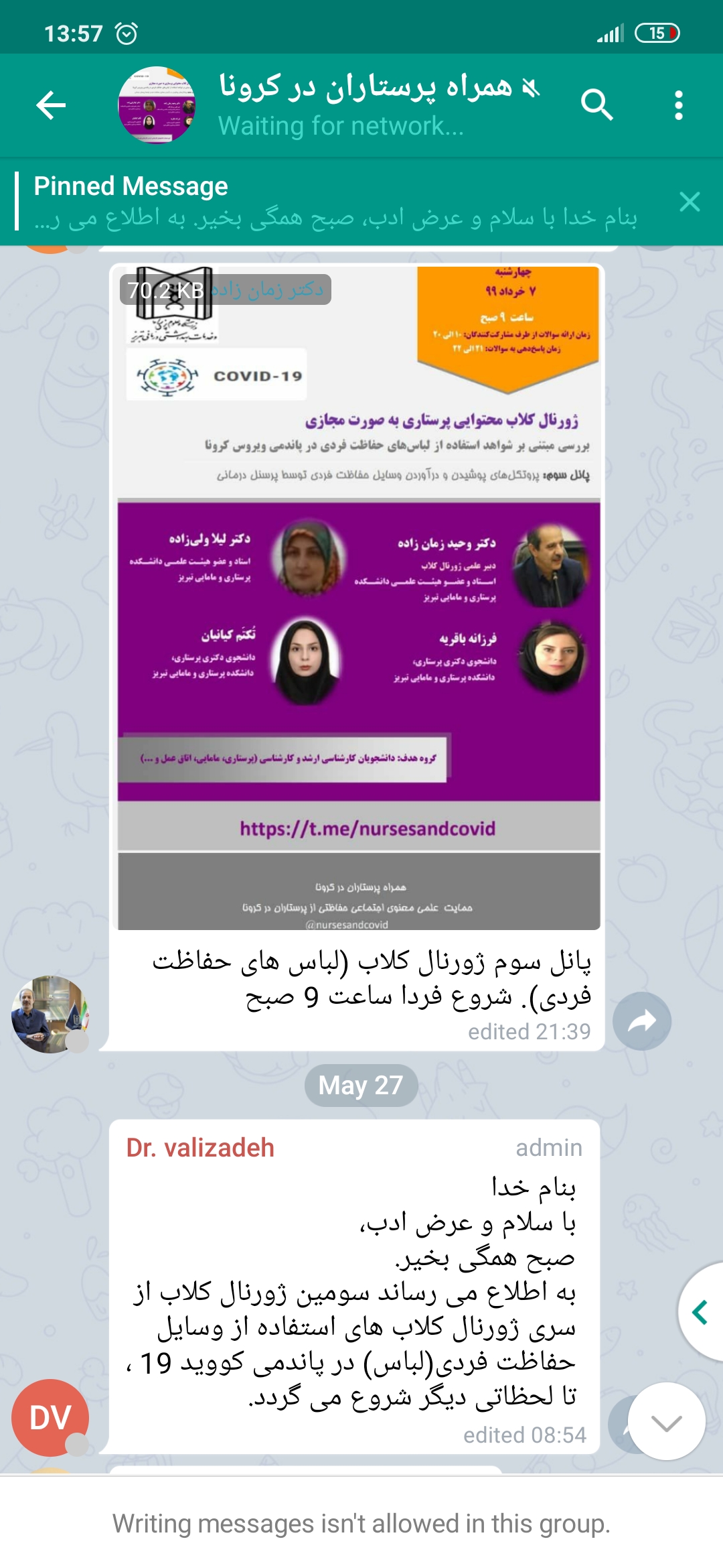 سومین روز سری دوم ژورنال کلاب مجازی کشوری با موضوع «پروتکل های پوشیدن و درآوردن وسایل حفاظت فردی توسط پرسنل درمانی»