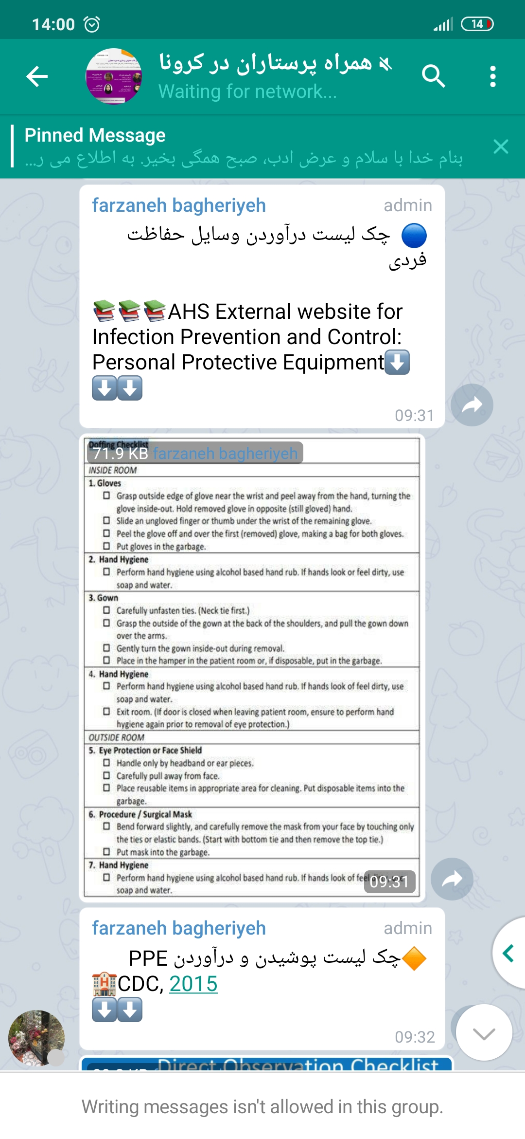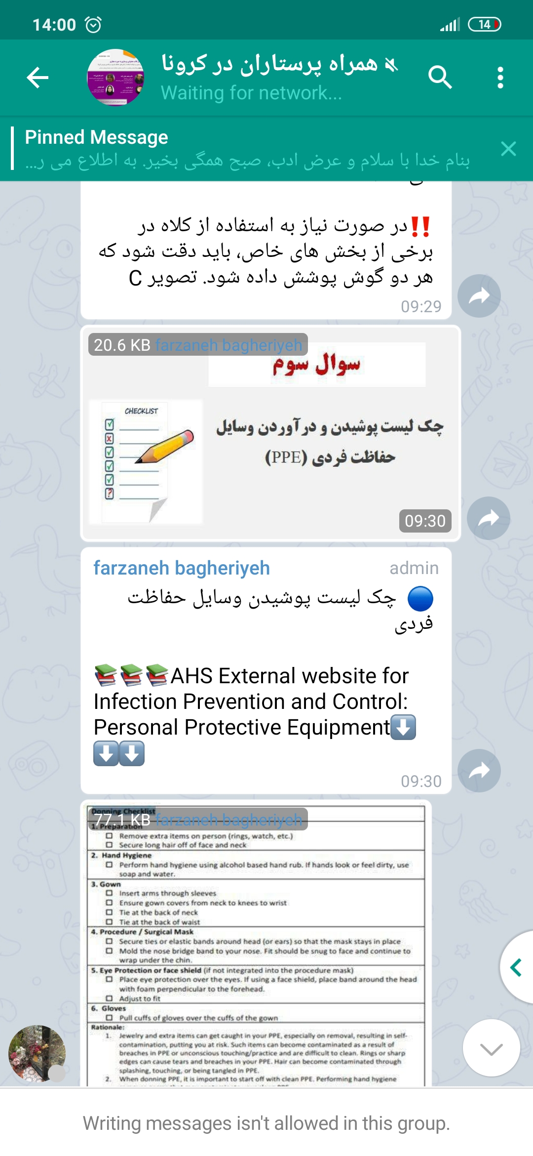 به گزارش روابط عمومی دانشکده علوم پزشکی تبریز پانل سوم سری دوم ژورنال کلاب مجازی کشوری با موضوع «پروتکل های پوشیدن و درآوردن وسایل حفاظت فردی توسط پرسنل درمانی» امروز برگزار شد. مطالب و محتوای آموزشی در گروه مربوطه بارگذاری شده و مقالات و شواهد معتبر منتشر شده در حال مرور و بررسی می باشد. برخی از مطالب بارگذاری شده در پانل های فوق به شرح زیر می باشد.