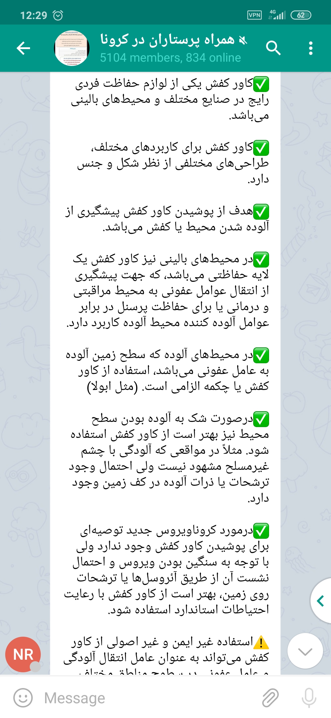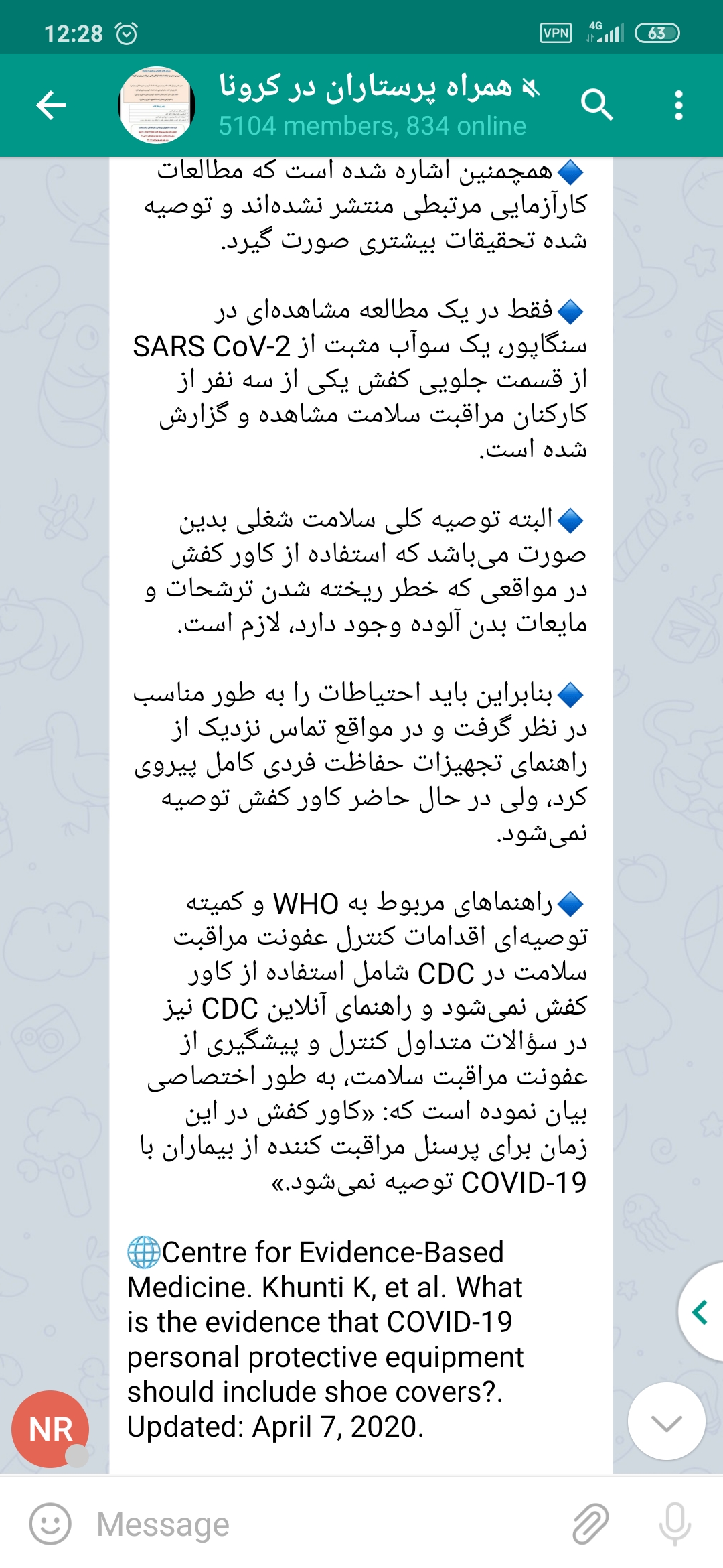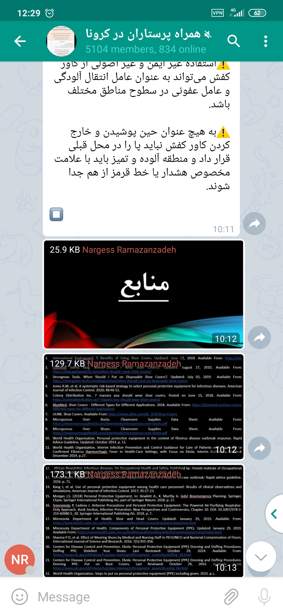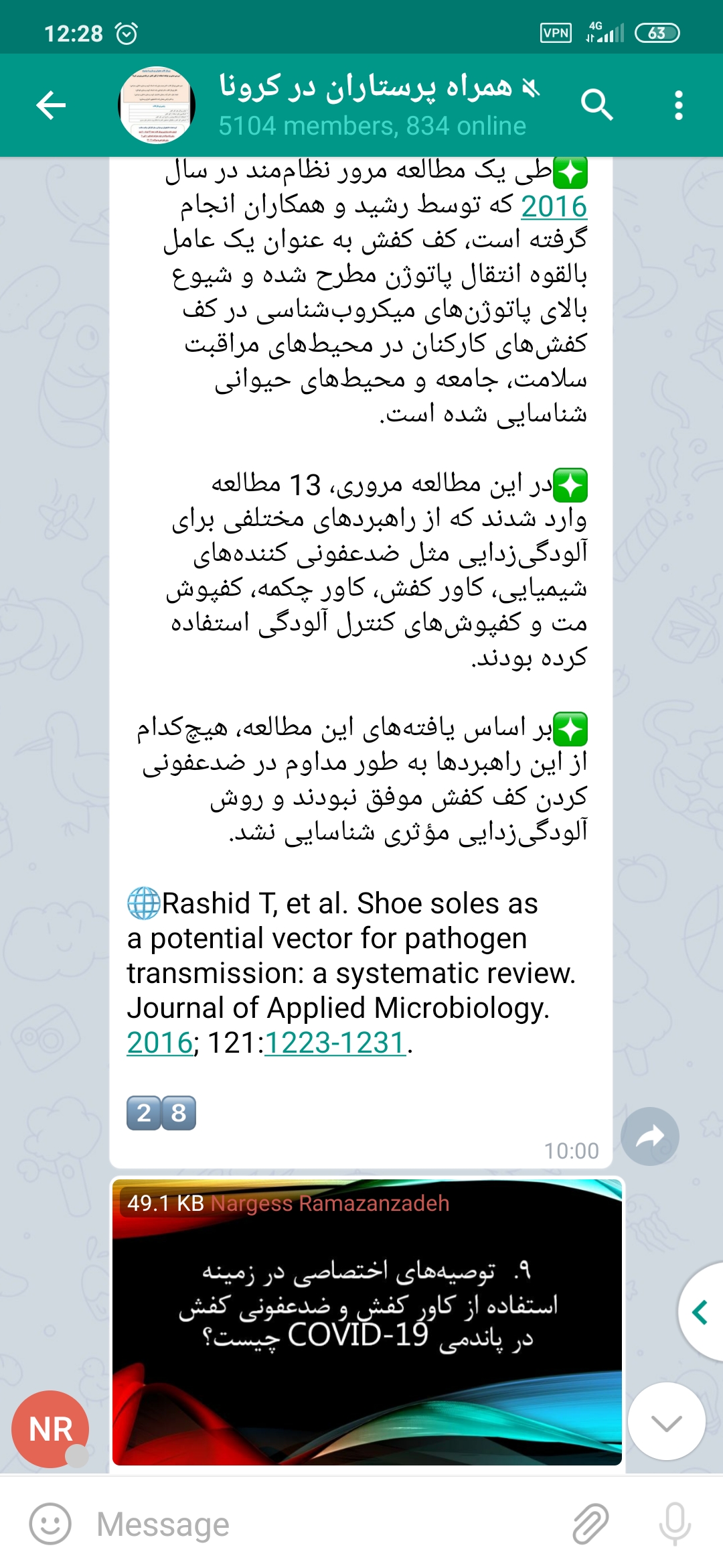 دومین پانل سری سوم با موضوع «بررسی مبتنی بر شواهد استفاده از کاور کفش در پاندمی ویروس کرونا» نیز روز جمعه 23 خرداد برگزار شد. در جمع بندی این پانل چنین مطرح شد که در مورد کرونا ویروس با توجه به سنگین بودن ویروس و احتمال نشست آن از طریق آئروسل ها یا ترشحات روی زمین، بهتر است از کاور کفش با رعایت احتیاطات استاندارد استفاده شود و استفاده غیر ایمن و غیر اصولی از کاور کفش می تواند به عنوان عامل انتقال آلودگی و عامل عفونی در سطوح مناطق مختلف باشد. برخی از مطالب، محتوای آموزشی و مقالات و شواهد معتبر منتشر شده در پانل های فوق به شرح زیر می باشد.