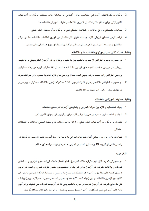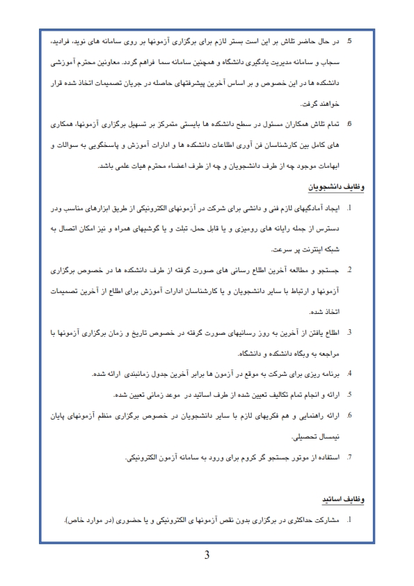 اعلام شیوه نام اجرایی برگزاری آزمونهای پایان نیمسال دوم سال تحصیلی 99-98