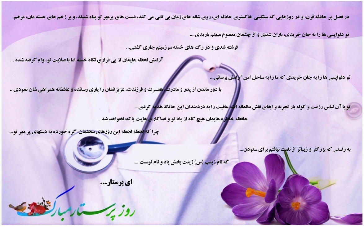 پیام تبریک ریاست محترم دانشکده بمناسبت ولادت حضرت زینب (س) و گرامیداشت روز پرستار