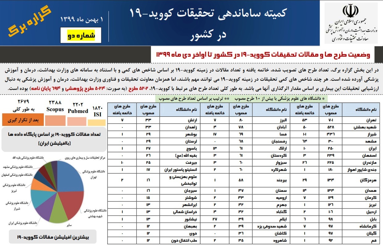 اطلاع رسانی دومین گزاره برگ کمیته ساماندهی تحقیقات کووید-19