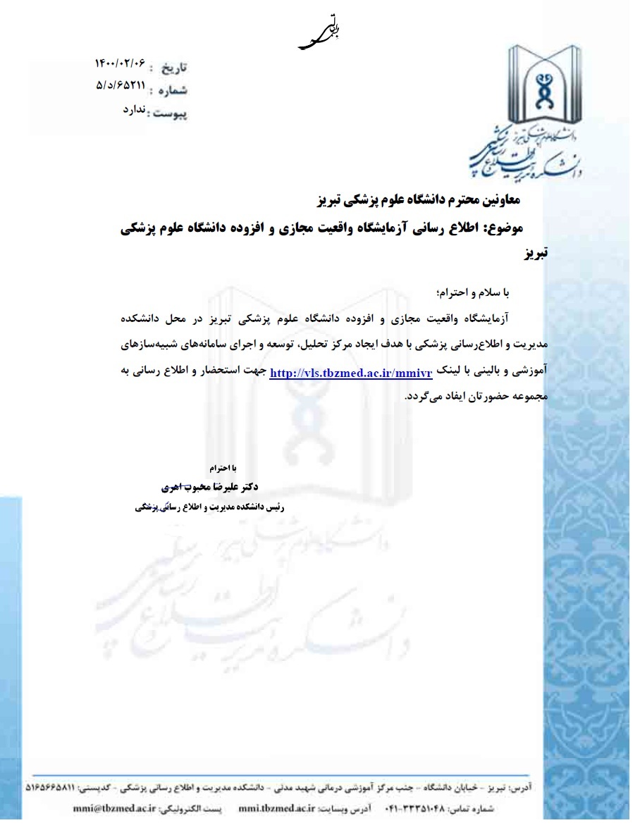 اطلاع رسانی آزمایشگاه واقعیت مجازی و افزوده دانشگاه علوم پزشکی تبریز