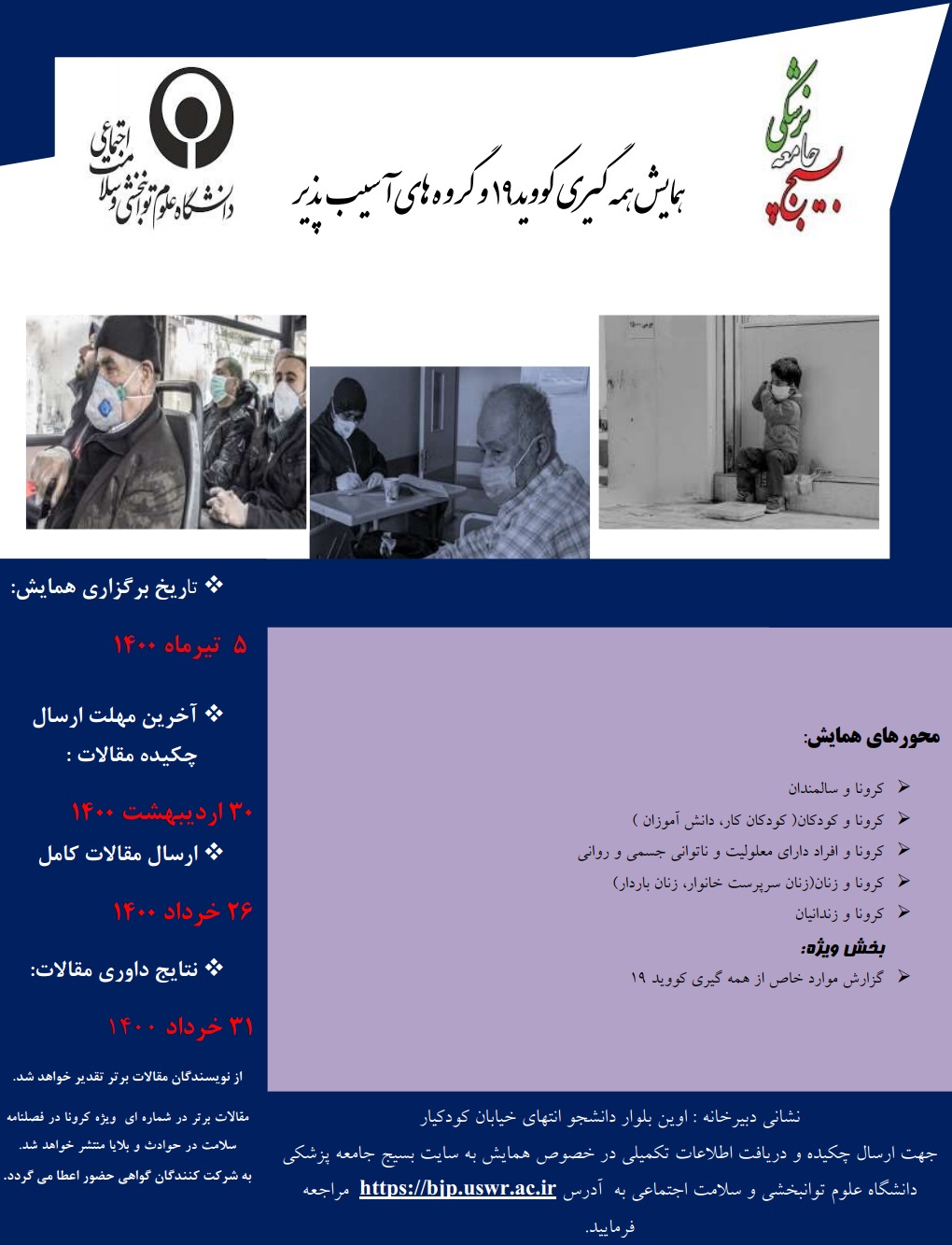 اطلاع رسانی برگزاری همایش «همه گیری کووید 19 و گروه های آسیب پذیر»