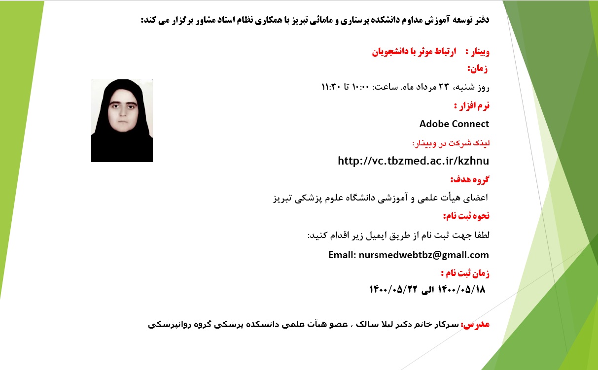 موضوع: وبینار ارتباط موثر با دانشجویان