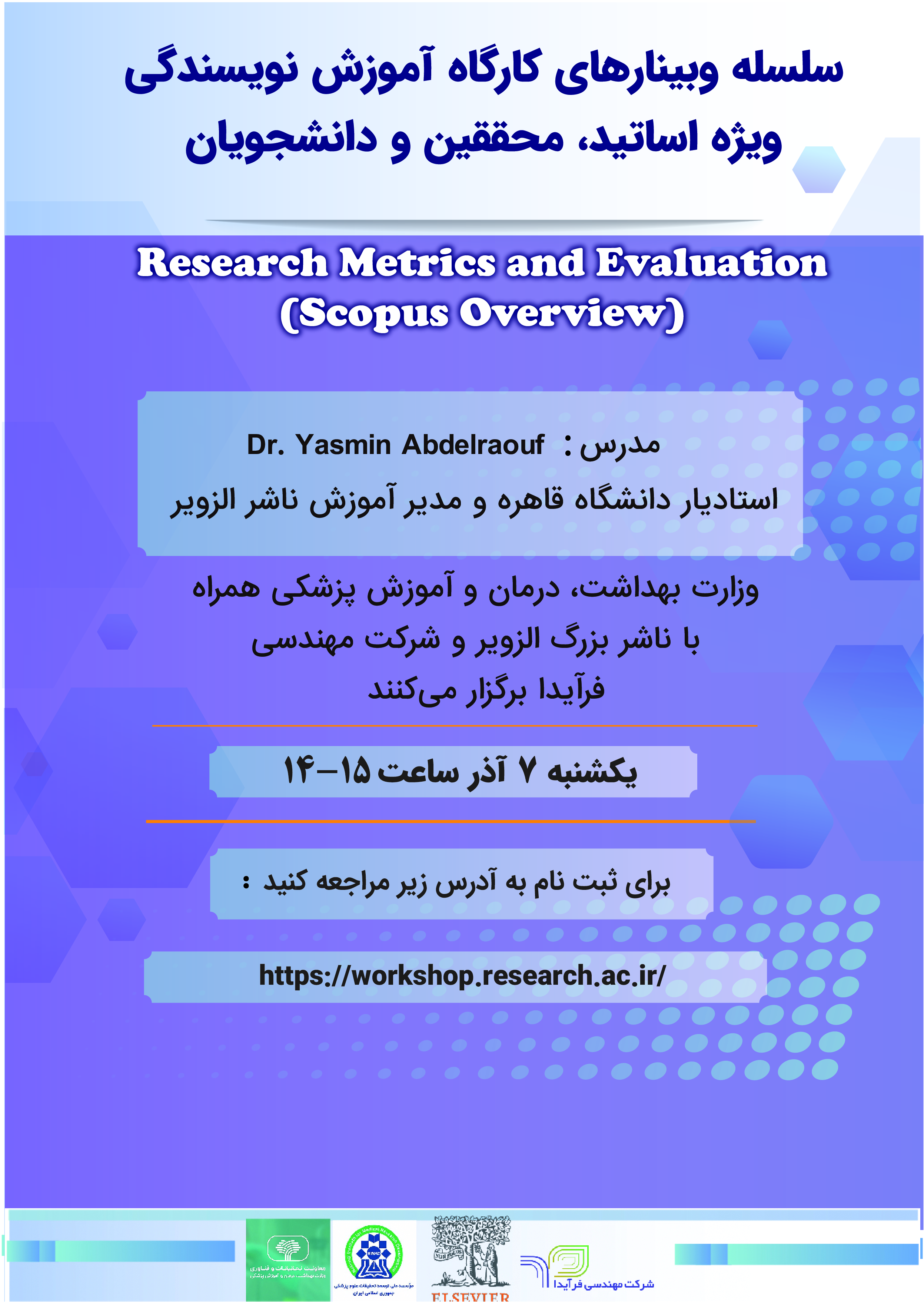 اطلاع رسانی برگزاری وبینار Research Metrics and Evaluation (Scopus Overview) ویژه اساتید، محققین و دانشجویان