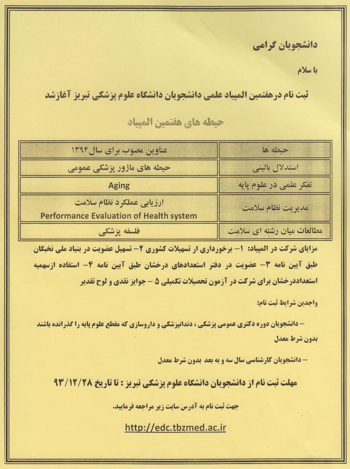 ثبت نام در هفتمین المپیاد علمی دانشجویان دانشگاه علوم پزشکی تبریز آغاز شد
