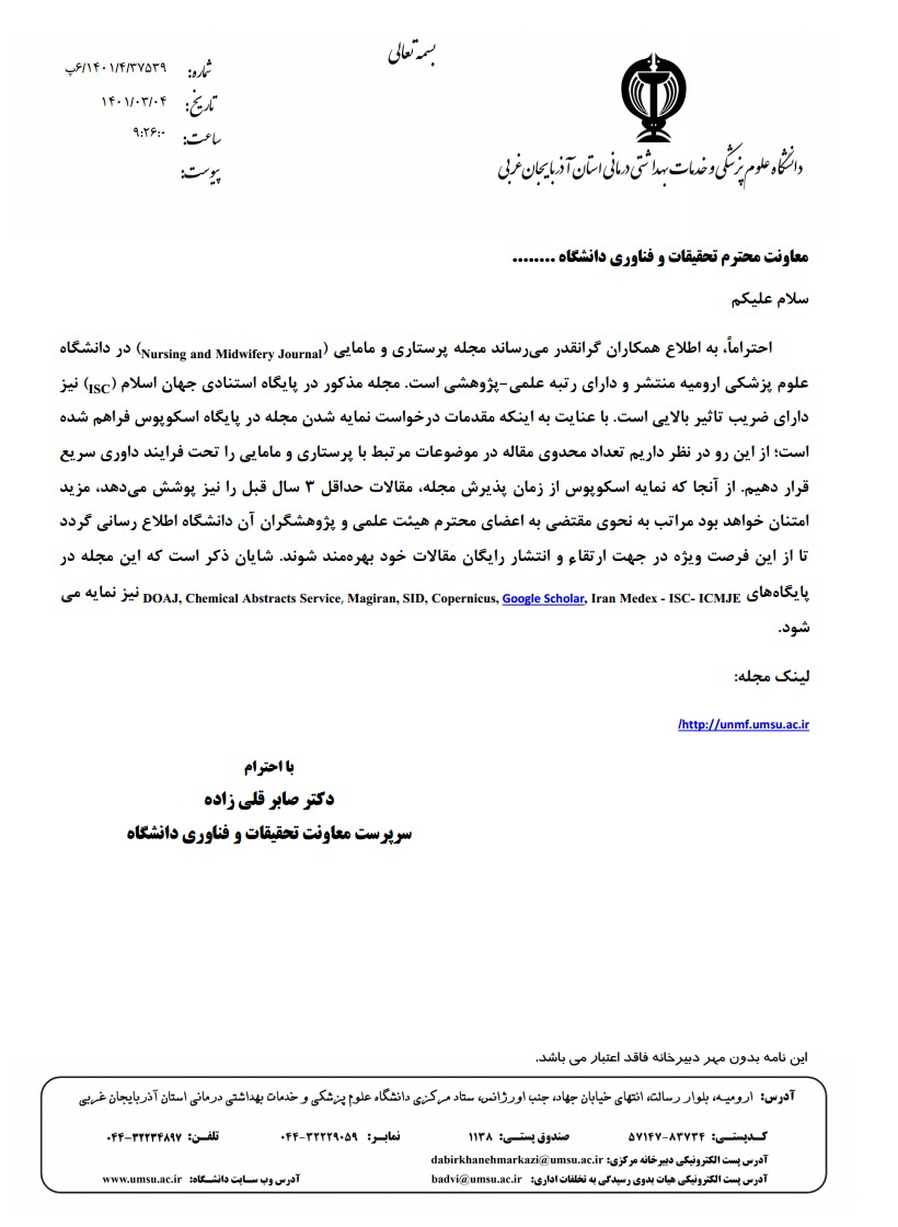 اعلام آمادگی مجله پرستاری و مامایی دانشگاه علوم پزشکی ارومیه برای چاپ مقاله