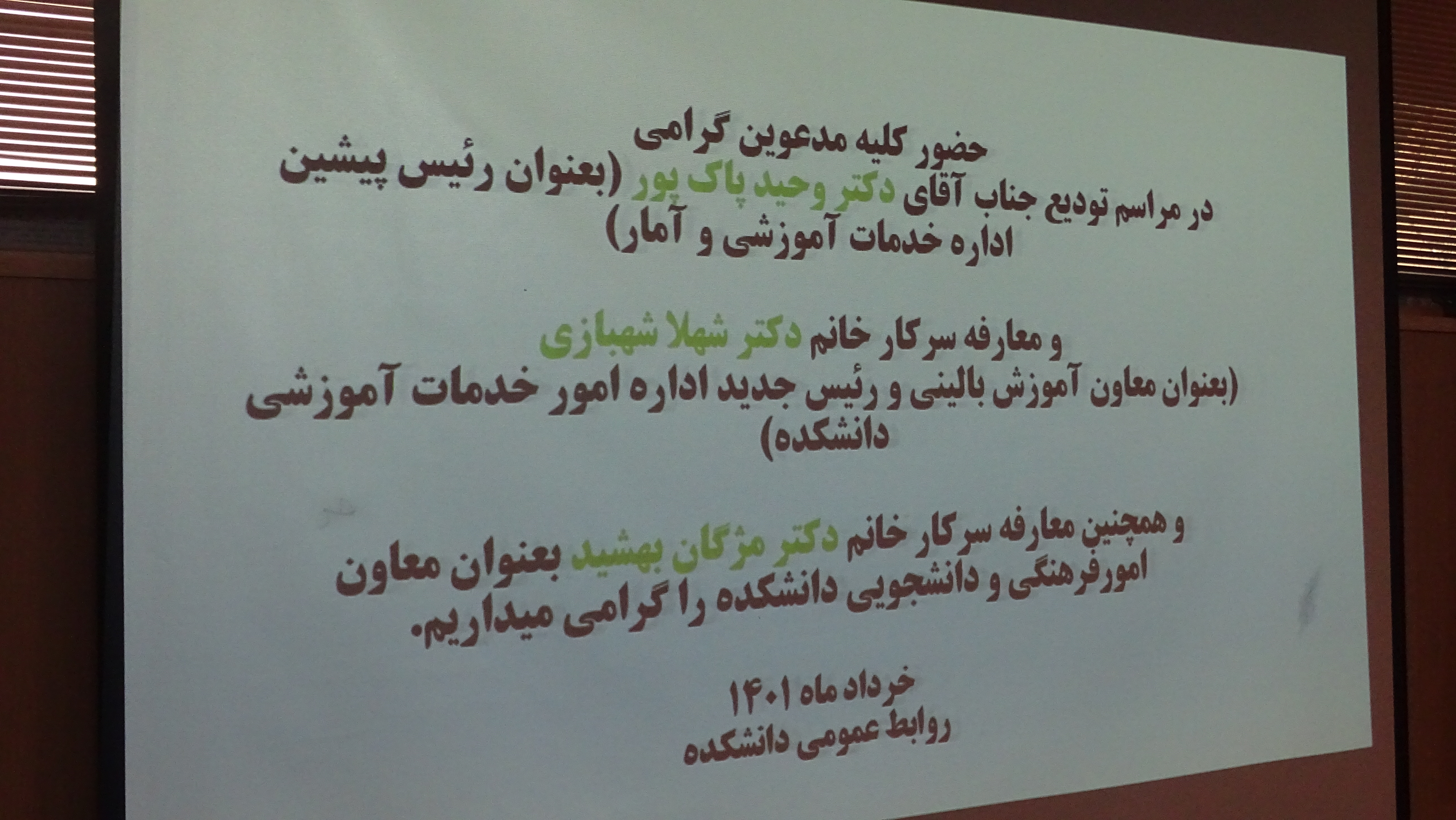 مراسم تودیع و معارفه روسای اداره خدمات آموزشی و معارفه معاون امور فرهنگی و دانشجویی دانشکده