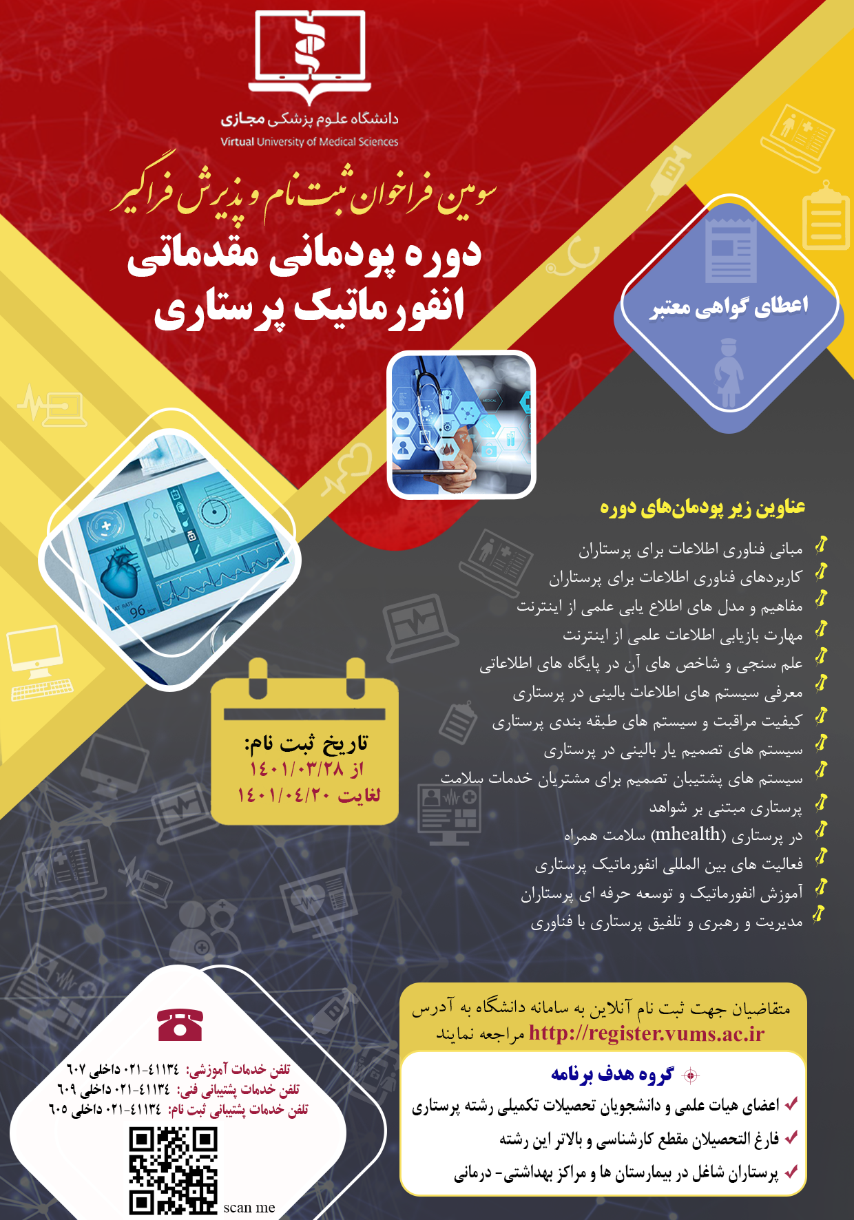 سومین فراخوان ثبت نام و پذیرش فراگیردوره پودمانی مقدماتی انفورماتیک پرستاری