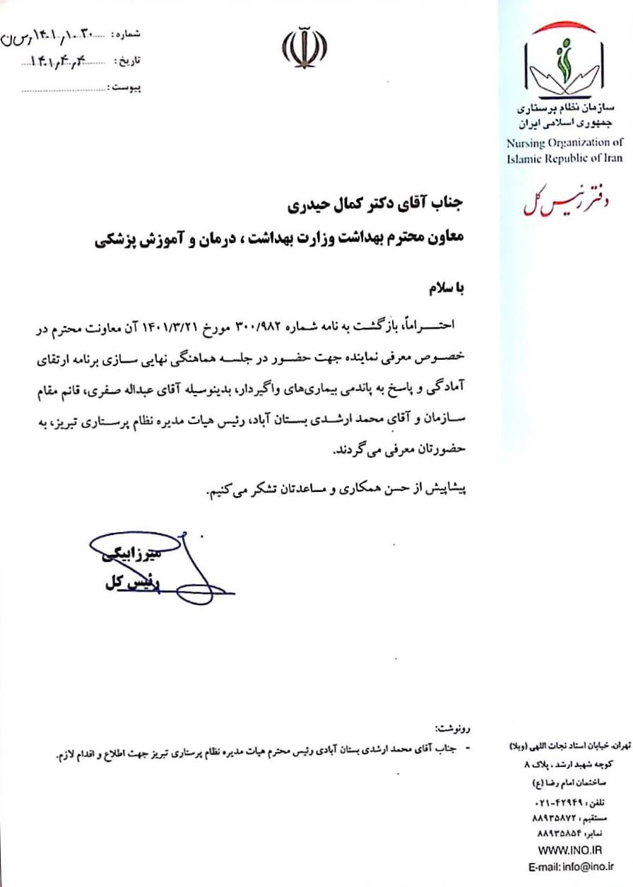 معرفی جناب آقایان دکتر ارشدی و صفری بعنوان نماینده سازمان نظام پرستاری در جلسه بیماریهای واگیردار
