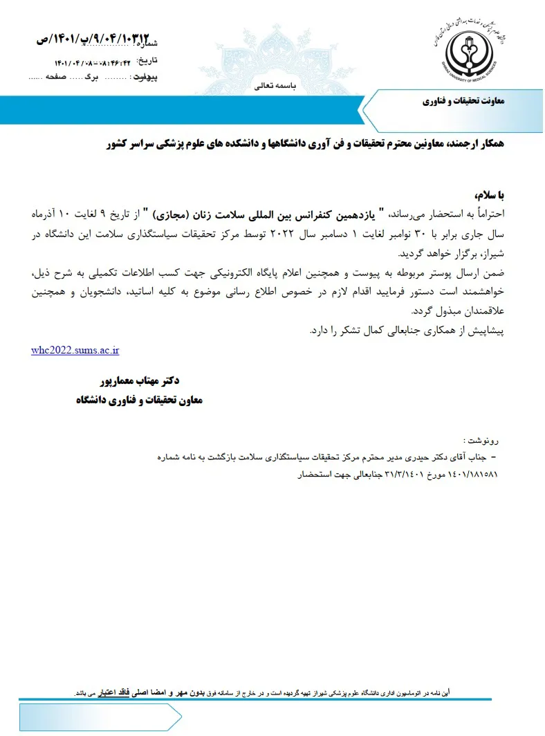 یازدهمین کنفرانس بین المللی سلامت زنان (مجازی) دانشگاه علوم پزشکی فارس