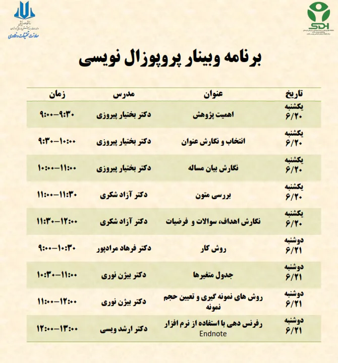 اطلاعیه برگزاری وبینار پروپوزال نویسی
