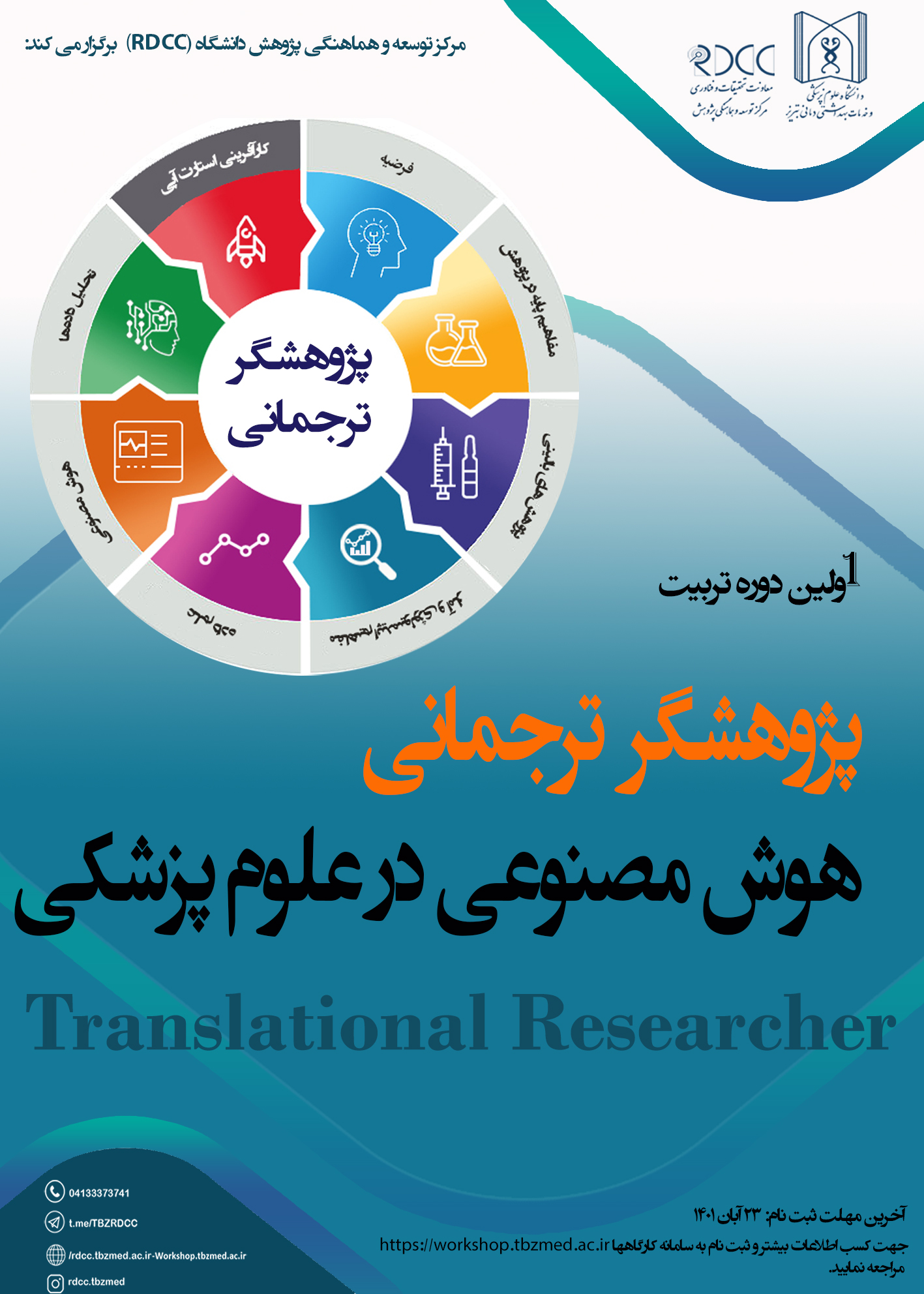 به اطلاع علاقمندان میرساند مرکز توسعه و هماهنگی پژوهش دانشگاه (RDCC) اولین دوره تربیت پژوهشگر ترجمانی هوش مصنوعی در علوم پزشکی را برگزار می نماید. آخرین مهلت ثبت نام تا 23 آبان 1401 می باشد.
