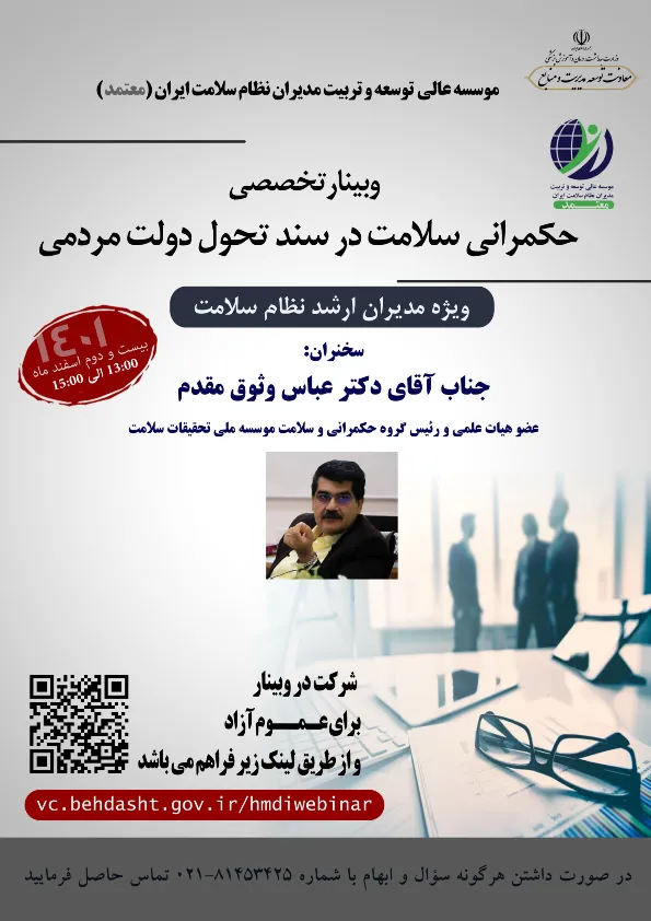 اطلاع رسانی وبینار تخصصی «حکمرانی سلامت در سند تحول دولت مردمی»