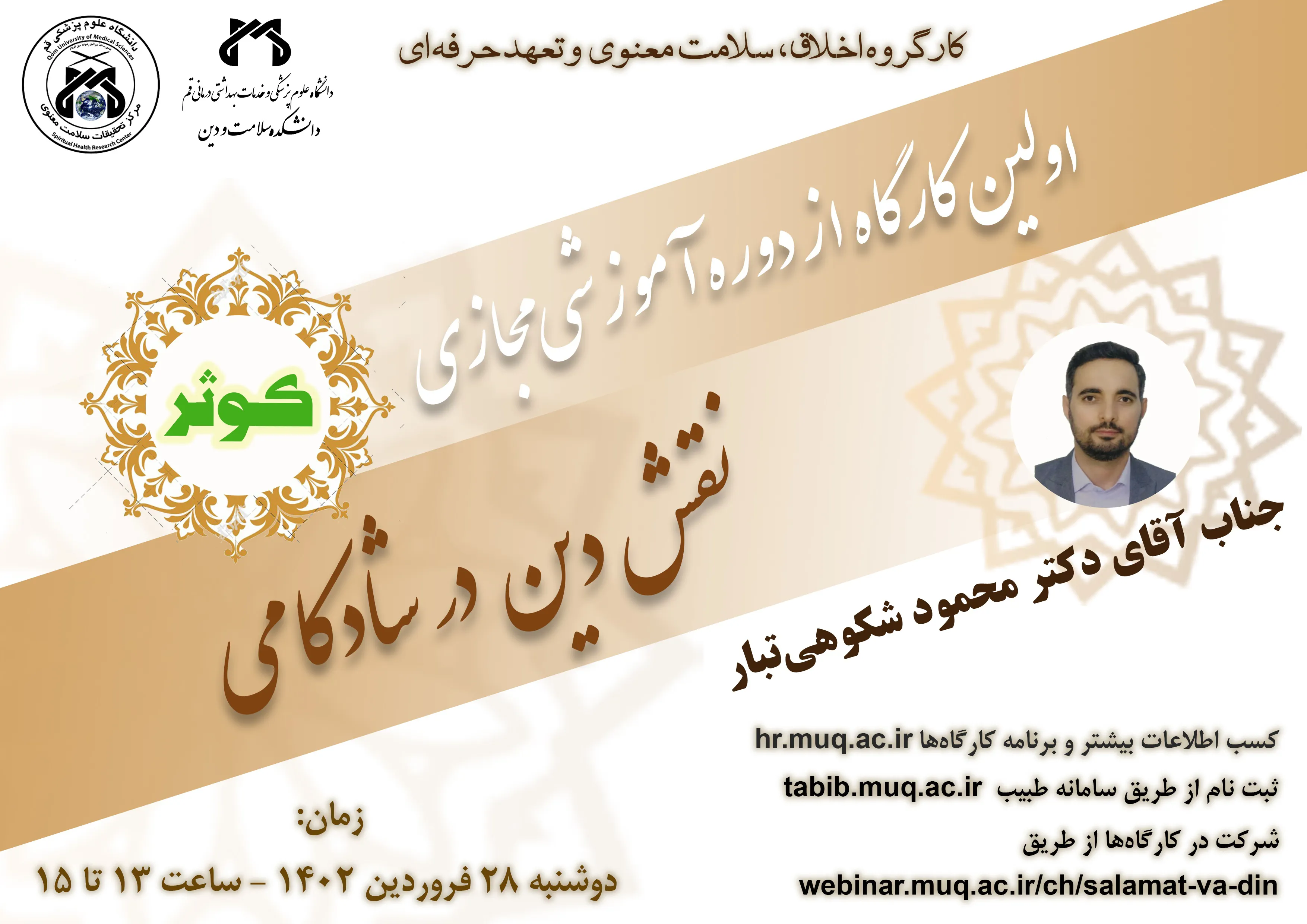 اطلاعیه برگزاری کارگاههای دوره آموزشی مجازی کوثر (کارگاه نقش دین در شادکامی)