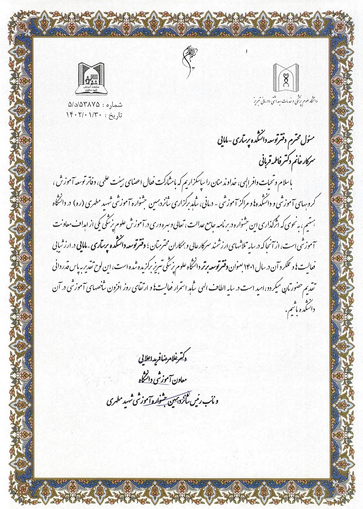 کسب رتبه برتر دفتر توسعه آموزش دانشکده در شانزدهمین جشنواره آموزشی شهید مطهری