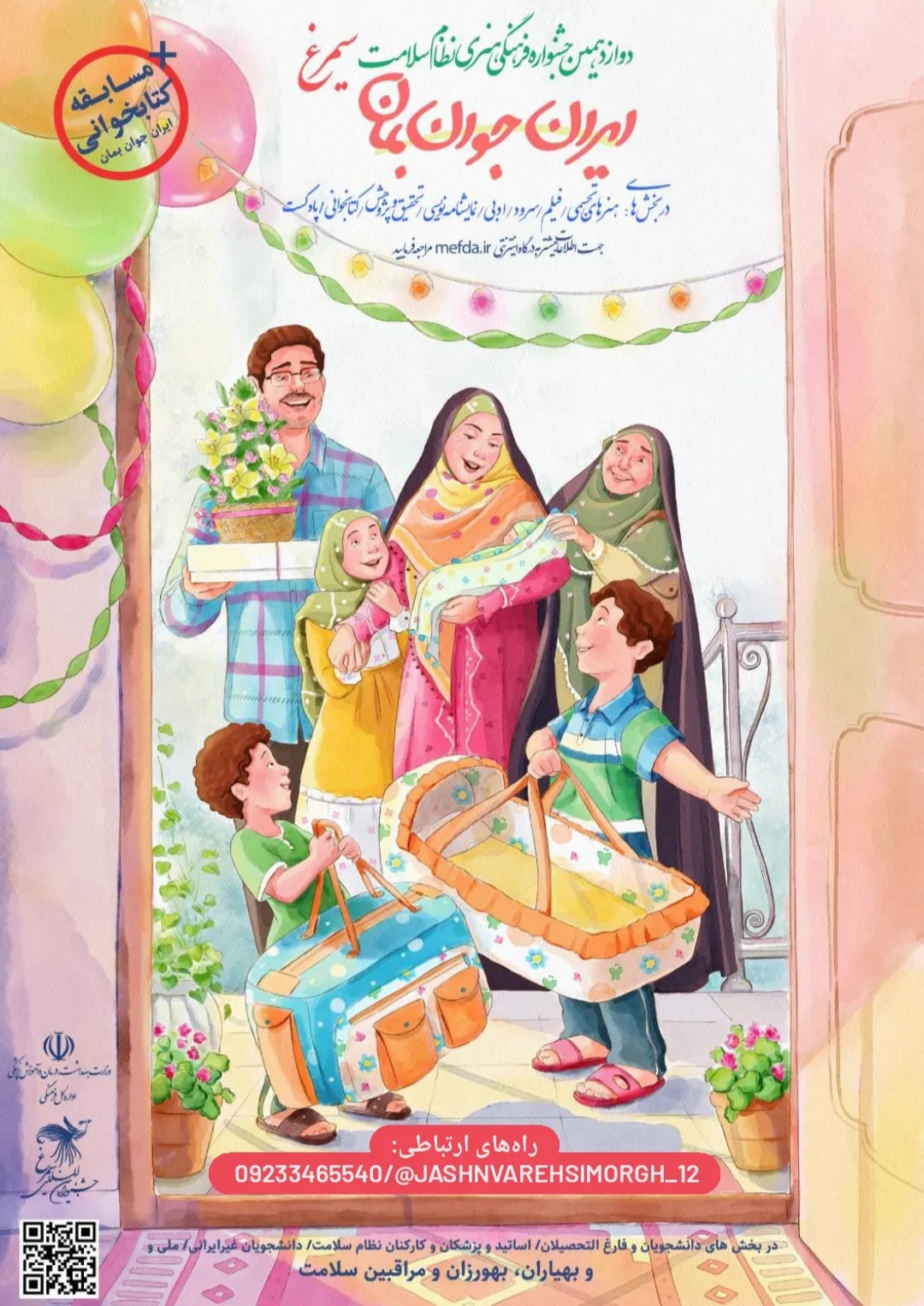علاقهمندان میتوانند جهت شرکت در جشنواره و دریافت اطلاعات بیشتر در پیامرسان ایتا با آیدی @jashnvarehsimorgh_12 و یا شماره تماس 09233465540 در ارتباط باشند. پوستر و آیین نامه جشنواره به پیوست تقدیم می گردد. (آئین نامه بخش اساتید / آئین نامه بخش کارکنان / آئین نامه بخش شبکه های بهداشت)