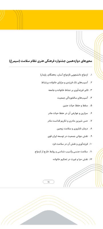 باستحضار میرساند دوازدهمین جشنوارهی فرهنگی و هنری سیمرغ با موضوع جوانی جمعیت برای دانشجویان، اساتید، کارکنان، شبکههای بهداشت و بهورزها در رشتههای نمایش نامه نویسی، تحقیق و پژوهش، سرود، فیلم، ادبی، هنرهای تجسمی، برنامه های رادیویی و مسابقه کتاب خوانی برگزار می گردد.