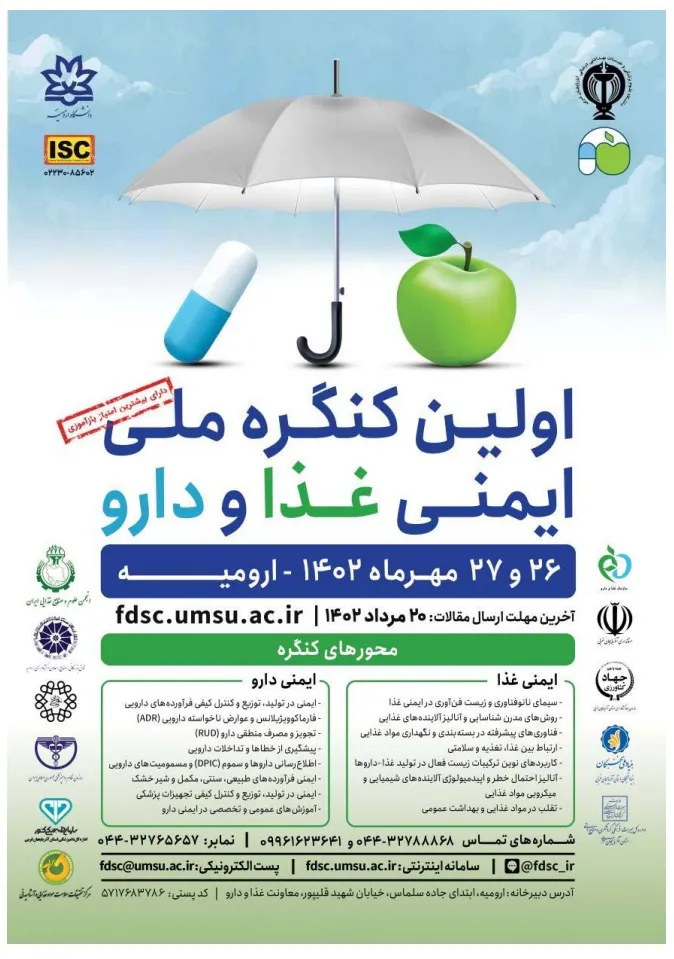 به اطلاع علاقمندان میرساند اولین کنگره ملی ایمنی غذا و دارو، مورخ 26 و 27 مهر 1402 در شهر اورمیه برگزار خواهد شد.