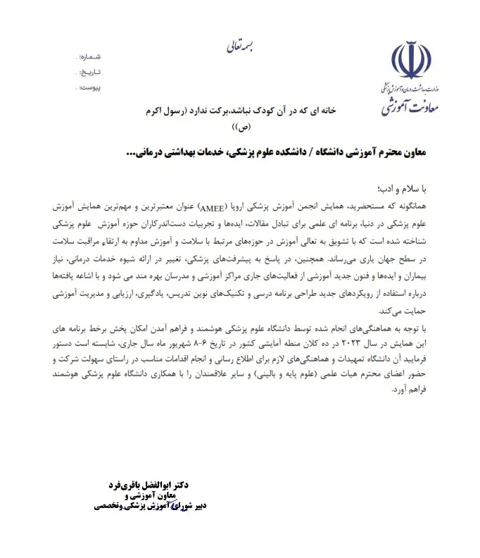 اطلاع رسانی برگزاری همایش آموزش پزشکی AMEE از 6 الی 8 شهریور 1402