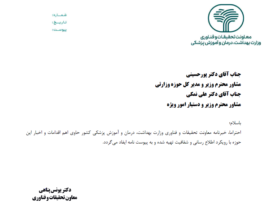 انتشار خبرنامه شماره 32 معاونت تحقیقات و فناوری وزارت بهداشت