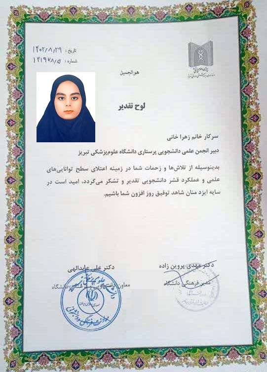 تقدیر معاون و مدیر فرهنگی و دانشجویی دانشگاه از دانشجوی پرستاری دانشکده