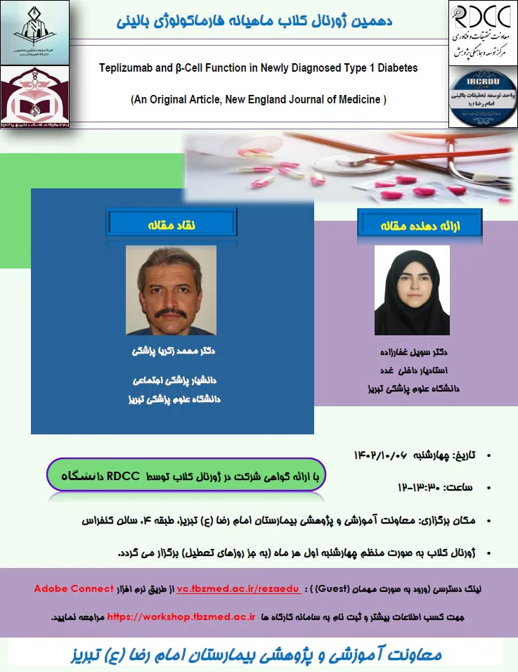 دهمین جلسه ژورنال کلاب ماهیانه کلینیکال فارماکولوژی بیمارستان امام رضا (ع) تبریز
