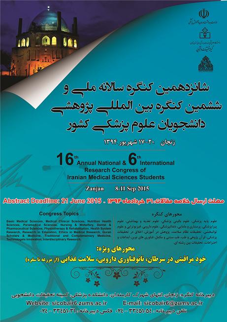 مهلت ارسال خلاصه مقالات به دبيرخانه كنگره بين اللملي پژوهشي دانشجويان علوم پزشكي كشور تا تاريخ 20تيرماه 1394 تمديد شد. لازم به ذكر است شانزدهمين كنگره ملي و ششمين كنگره بين المللي پژوهشي دانشجويان علوم پزشكي كشور از 17 تا 20 شهريور ماه 1394 به ميزباني دانشگاه علوم پزشكي و خدمات بهداشتي درماني زنجان و با حمايت معاونت تحقيقات و فناوري وزرات متبوع برگزار خواهد گرديد. جهت کسب اطلاعات بیشتر اینجا کلیک نمائید.