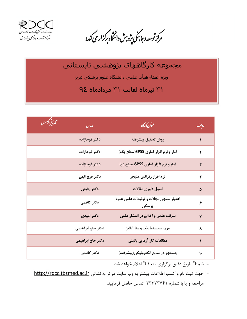 مجموعه کارگاه های پژوهشی تابستانی (ویژه اعضاء هیأت علمی)