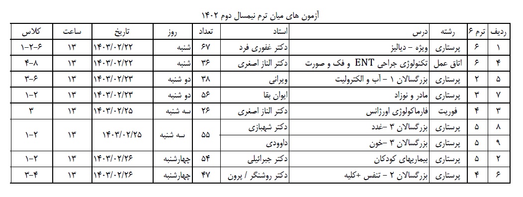 اعلام زمان برگزاری آزمونهای میان ترم نیمسال دوم 1403-1402