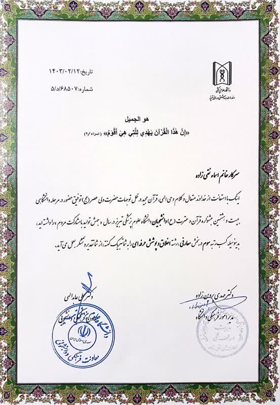 موفقیت جمعی از دانشجویان دانشکده در بیست و هشتمین جشنواره قرآن و عترت