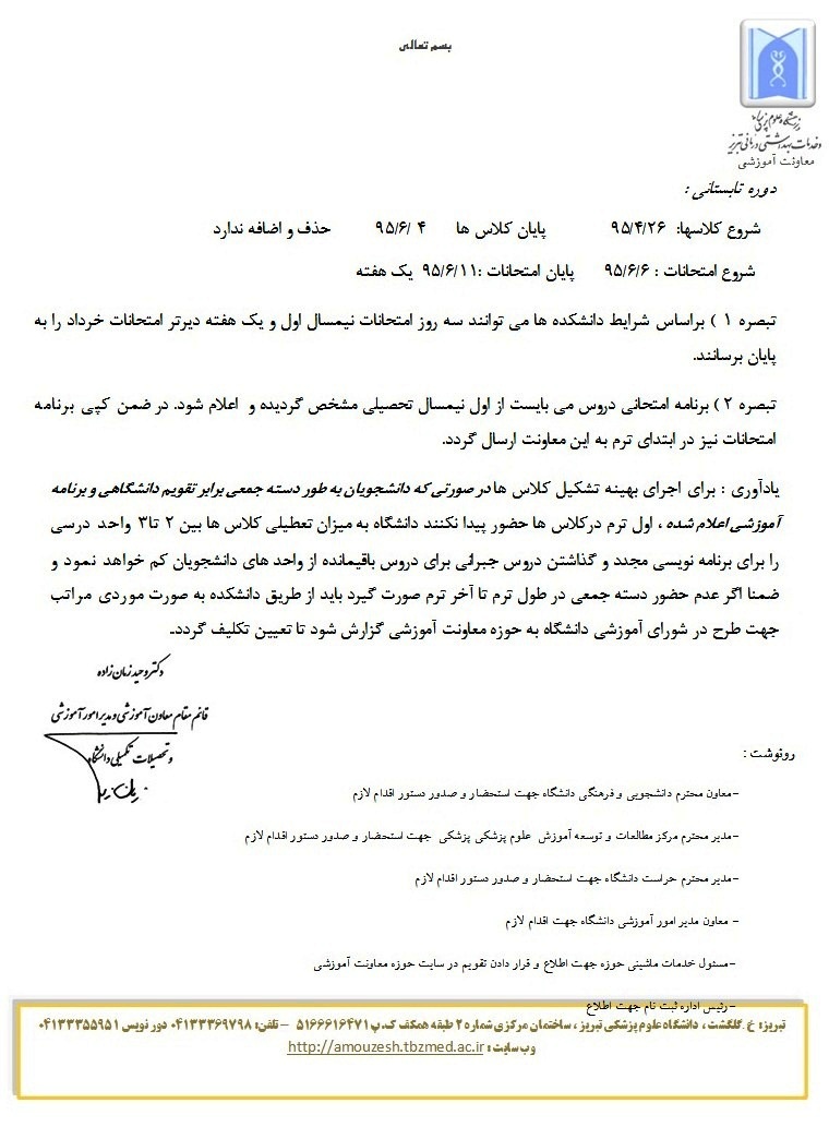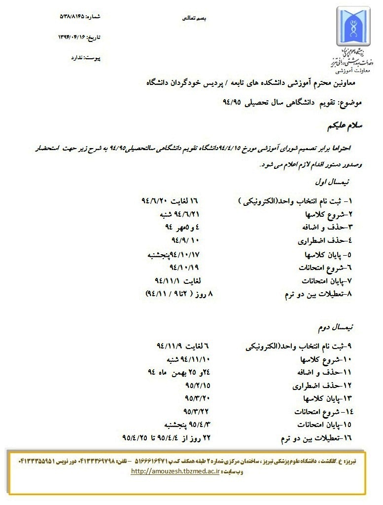 اعلام زمانبندی تقویم دانشگاهی سال تحصیلی 95-94