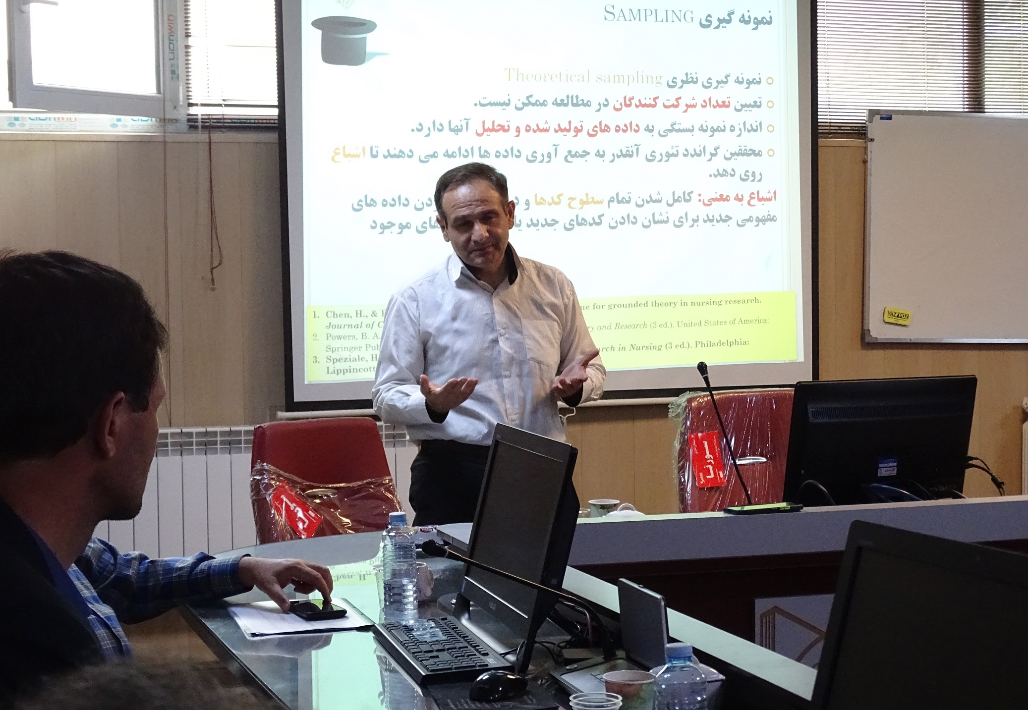 جلسه سوم مدرسه تابستانه تحقیقات کیفی روز دوشنبه، مورخ 8 مرداد 1403 از ساعت 8 صبح الی 12 در سالن کنفرانس جدید دانشکده پرستاری و مامایی با موضوع گراندد تئوری و با تدریس اساتید آقای دکتر هادی حسن خانی، آقای دکتر محمد حسن صاحبی حق و آقای دکتر حسین ابراهیمی و حضور پر شور دانشجویان از دانشکده های مختلف و اساتید دانشگاه تشکیل شد. نکات اصلی تدریس شده در این جلسه، رویکردهای مختلف گراندد تئوری و مراحل آن، نمونه گیری و ابزارهای تحلیل در تحقیقات گراندد تئوری و تکنیک های ادغام مقوله ها بود. در حین تدریس نیز دانشجویان و اساتید، سوالات و مشکلات خود در زمینه گرادندد تئوری را مطرح نموده و به بحث و تبادل نظر پرداختند. از نقاط قوت جلسه ی مذکور تدریس تیمی اساتید و رفع اشکال دانشجویان با نظرات متخصصین در این زمینه بود. در ادامه گالری تصاویر مربوط به این کارگاه را مشاهده مینمائید.