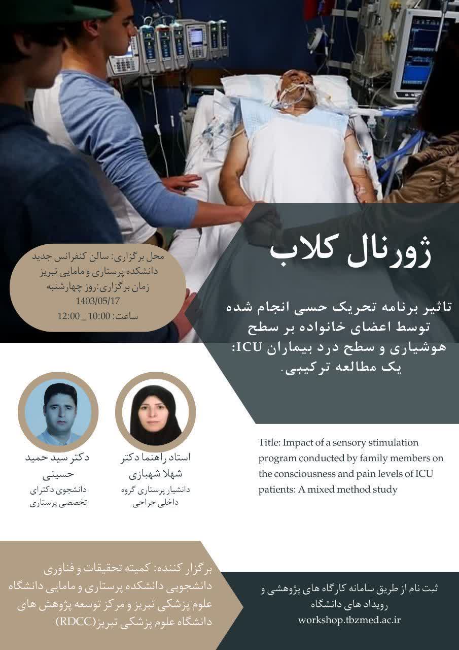 دعوت به شرکت در ژورنال کلاب در مورد تحریک حسی در بیماران بستری در ICU