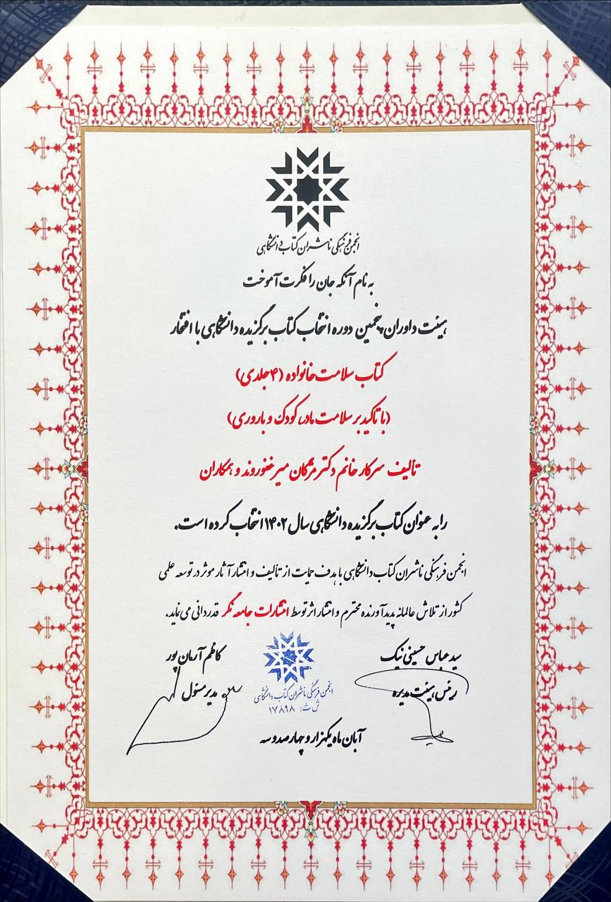 تبریک انتخاب کتاب تالیفی خانم دکتر میرغفوروند بعنوان کتاب برگزیده دانشگاهی