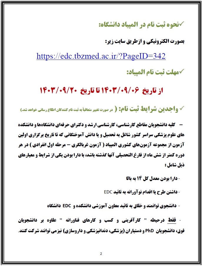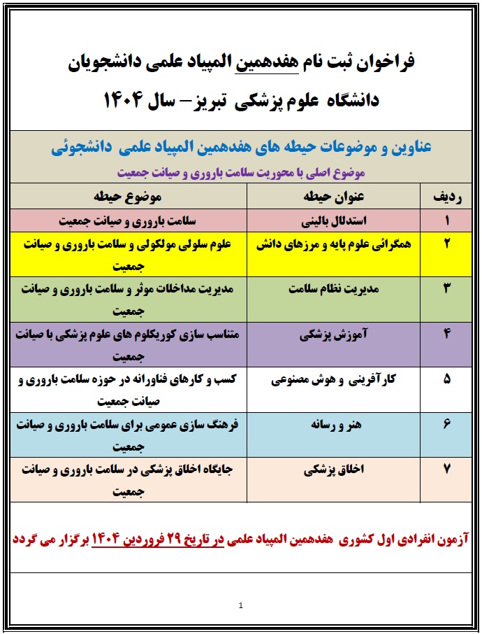 مهلت ثبت نام المپیاد: از تاریخ 1403/09/06 تا تاریخ 1403/09/20