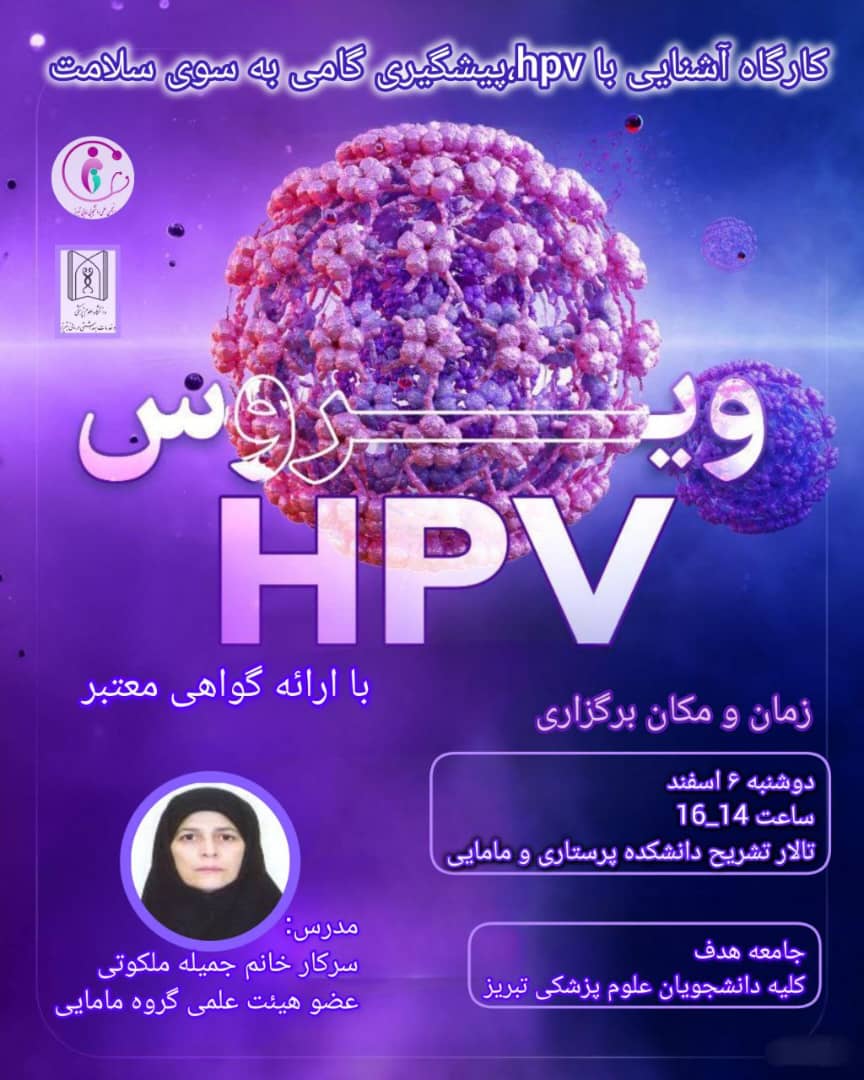 انجمن علمی دانشجویی مامایی تبریز برگزار می کند: کارگاه آشنایی با hpv، پیشگیری گامی به سوی سلامت (همراه با ارائه گواهی معتبر)