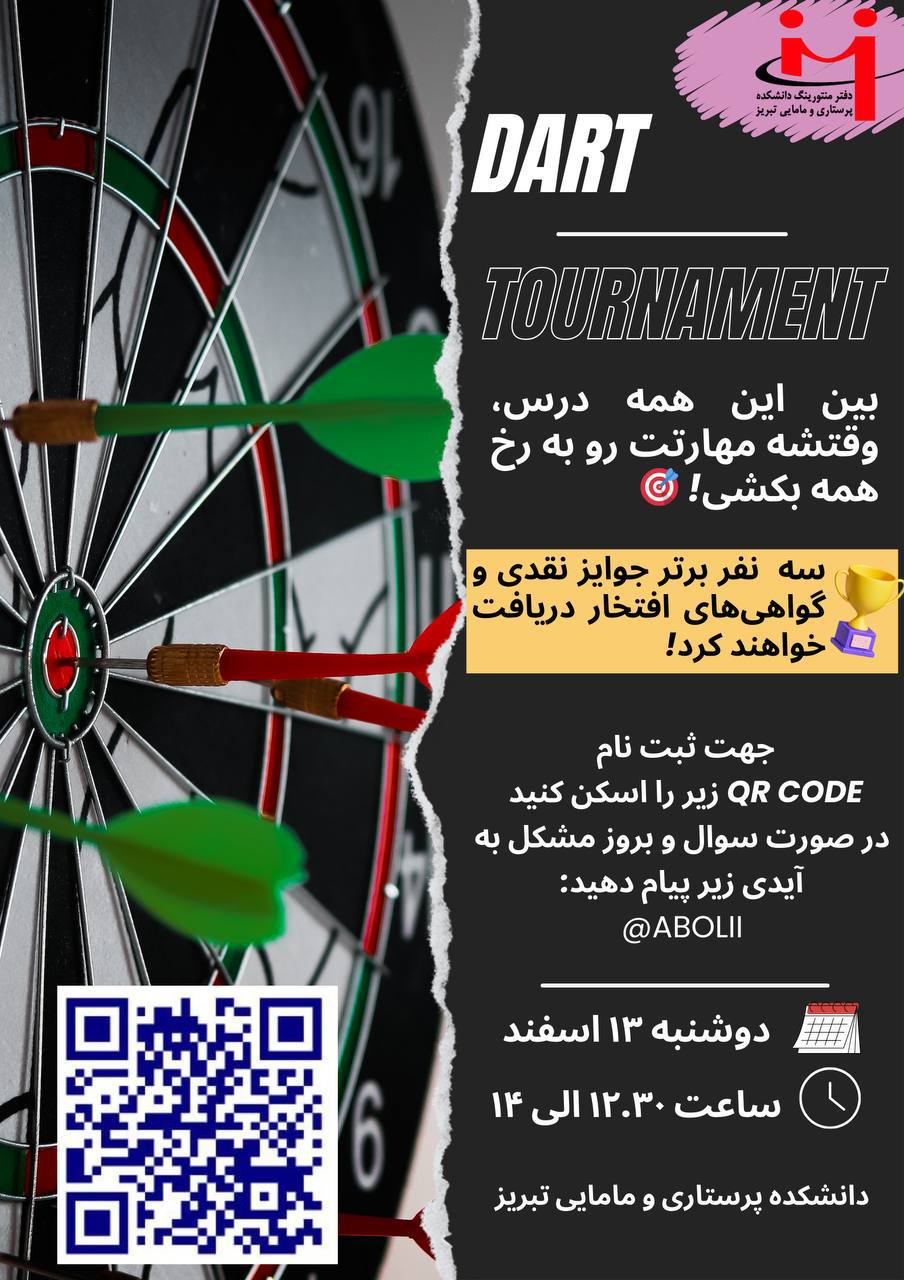 به اطلاع علاقمندان (اعم از اساتید، کارکنان و دانشجویان) میرساند دوشنبه منتورینگ این هفته، همراه با برگزاری مسابقه ورزشی دارت خواهد بود.