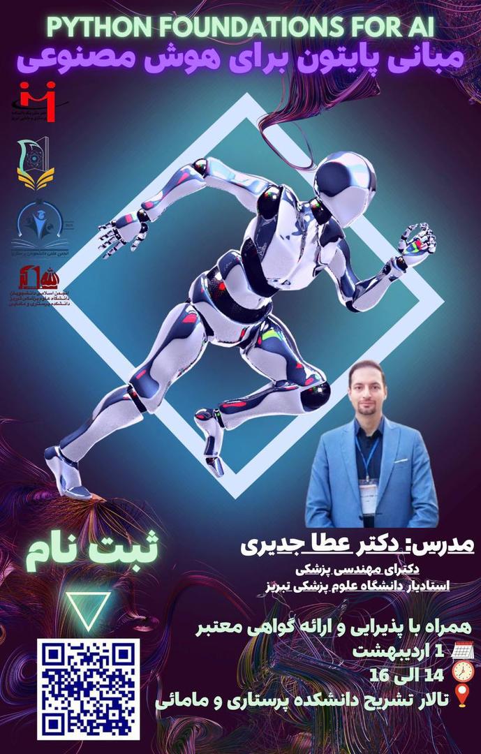 دفتر منتورینگ دانشکده پرستاری و مامایی تبریز با همکاری انجمن علمی پرستاری، انجمن علمی نانومد و انجمن اسلامی دانشجویان دانشکده پرستاری و مامایی تبریز، کارگاه آموزشی تخصصی مبانی پایتون برای هوش مصنوعی را برگزار میکند.