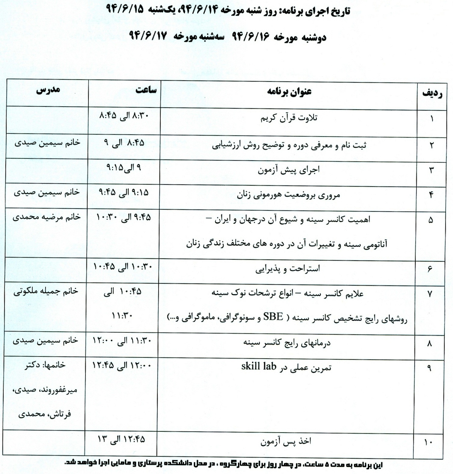 کارگاه چهار روزه ای تحت عنوان "آشنایی با سرطان سینه و روش های تشخیصی و درمان"،