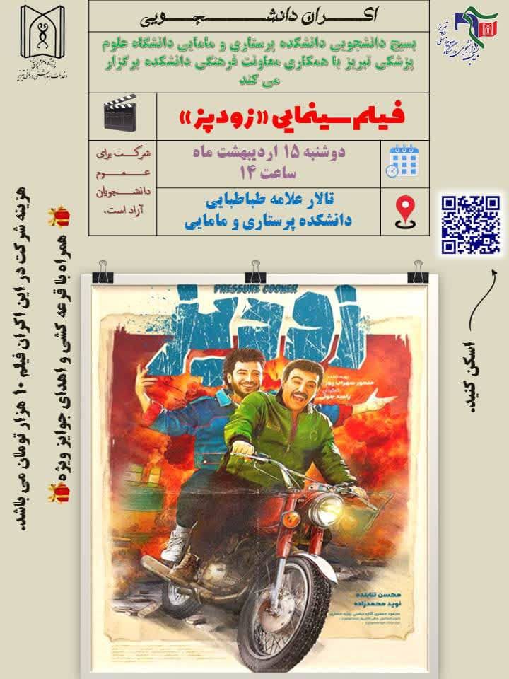 🕑زمان: دوشنبه 15 اردیبهشت ماه ۱۴۰۴ ، ساعت ۱۴ / 📍مکان: تالار علامه طباطبایی دانشکده پرستاری و مامایی تبریز (🍿همراه با پذیرایی😉)