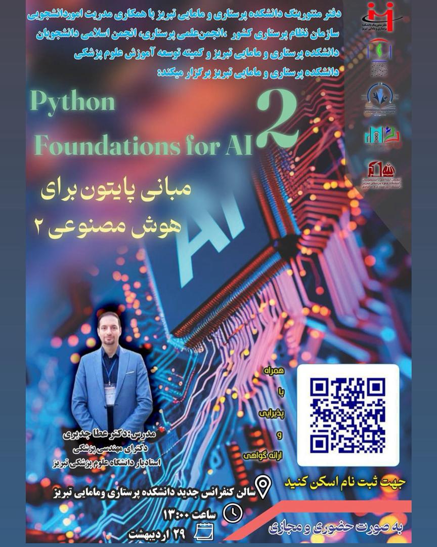 📢 کارگاه تخصصی: Python Foundations for AI Workshop 2 (حضوری و مجازی) / 🔹 آموزش مفاهیم پایهای پایتون در کاربردهای هوش مصنوعی ویژه دانشجویان علوم پزشکی و علاقهمندان به فناوری