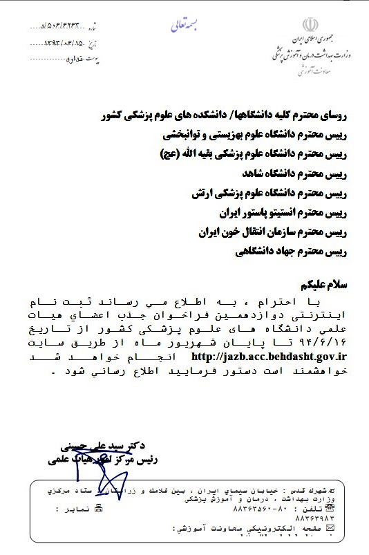 دوازدهمین فراخوان جذب هیات علمی دانشگاه های علوم پزشکی کشور